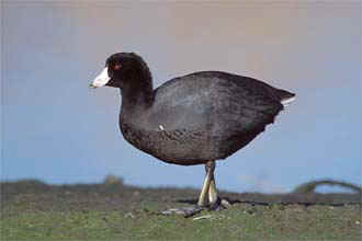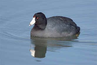 Characteristics The American Coot's feathers are dark gray, with a white patch under the tail. The bill is also white, with a red swelling along the upper edge. The lobed toes make the coot a powerful swimmer. Habitat Coots are freshwater birds and live in the shallows of freshwater lakes, ponds, and marshes. They are often found living in the manmade ponds of parks or golf courses. Status Common in Atlanta during spring and fall migration around local water sources.